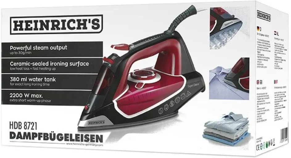Découvrez le fer à repasser vapeur électrique  CLATRONIC HDB8721  2200W, équipé d’une semelle en céramique pour une glisse fluide et une efficacité maximale. Ce fer est conçu pour produire un débit de vapeur constant de 20-30g/min, assurant un repassage impeccable en un minimum de temps. Il dispose également d’un câble en tissu rotatif à 360°, qui vous permet de manœuvrer librement sans contraintes de mouvements. Le contrôle continu de la température et de la vapeur s’adapte à tous vos besoins, garantissant des vêtements sans plis à chaque utilisation.