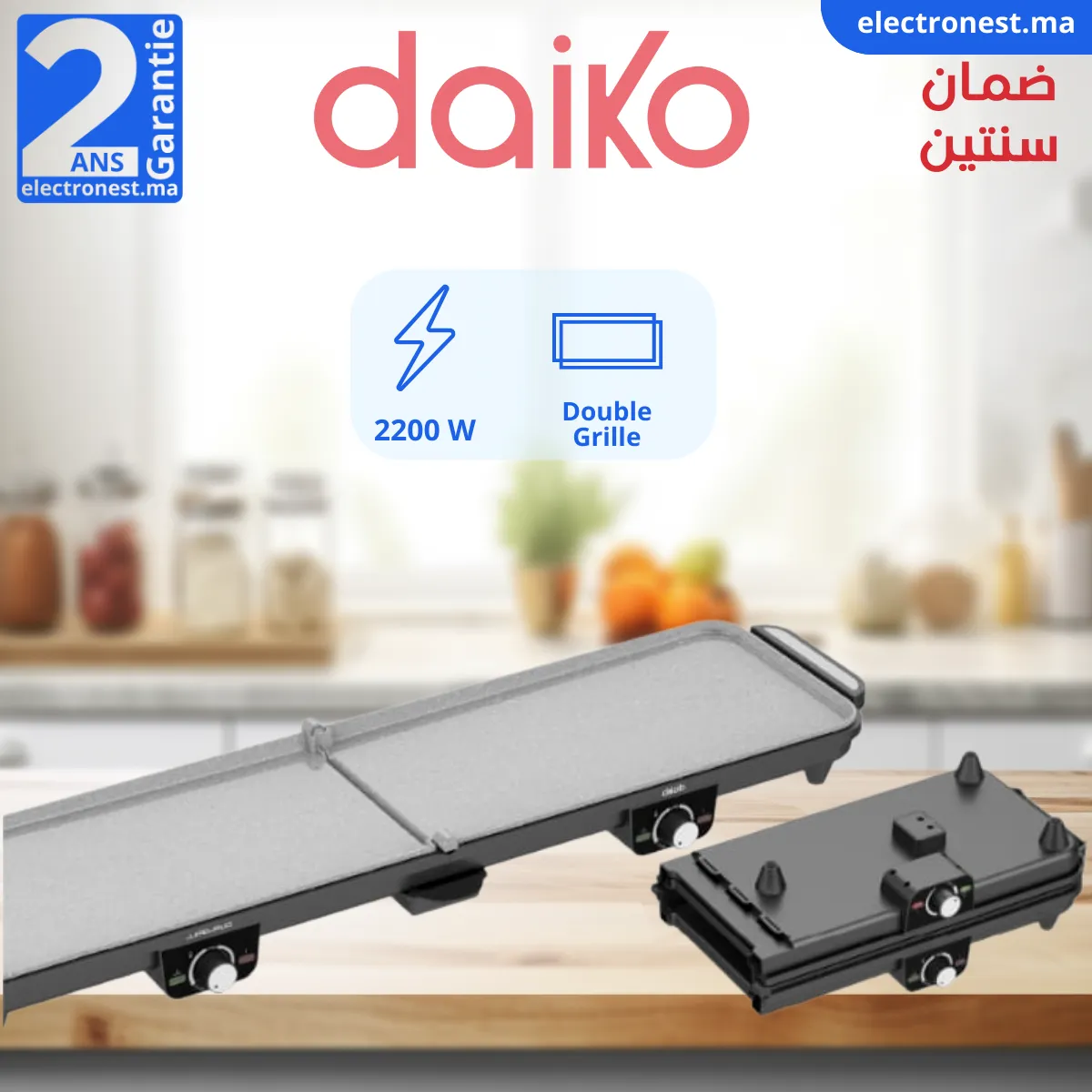 Daiko - Grill panini antiadhésif en GRANIT- 1400w Le prix initial était : 360.00د.م..Le prix actuel est : 249.00د.م..
