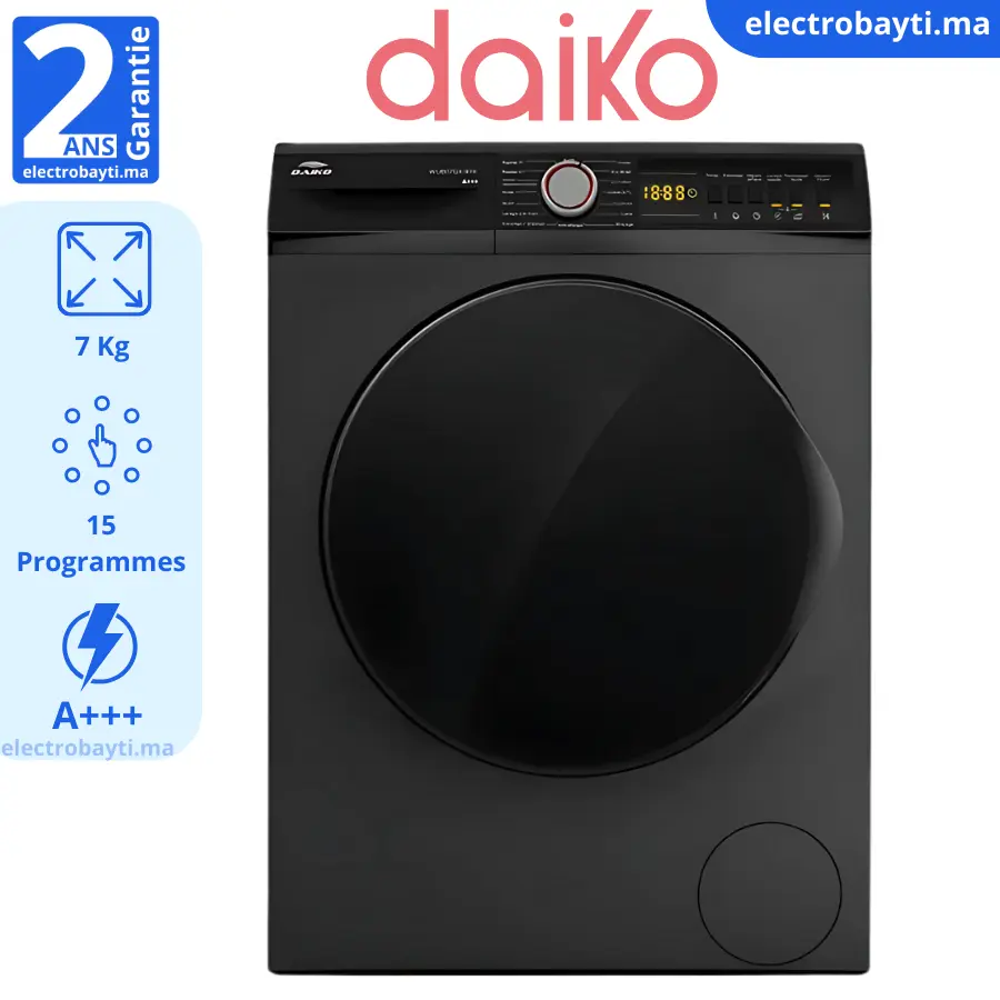 DAIKO - Machine à laver automatique Inverter SERIE 8 - 7Kg - 16 Programmes - 1200rpm - WI889FX87K Le prix initial était : 4200.00د.م..Le prix actuel est : 3500.00د.م..