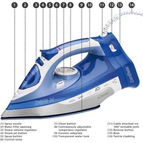 Bomann Fer à Repasser 2en1 2400W — Centrale Vapeur – Semelle Acier Inoxydable