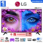 La Smart TV LG UHD 55 pouces LED 4K associe design moderne et performances de pointe pour offrir une expérience audiovisuelle immersive. Équipée d’un écran Ultra HD avec rétroéclairage Direct LED et du processeur α5 AI Processor 4K Gen7, elle délivre des images d’une netteté remarquable et des couleurs éclatantes. Les technologies avancées comme HDR10 PRO, HLG et FILMMAKER MODE™ assurent une restitution fidèle des contenus, telle que pensée par les créateurs..
