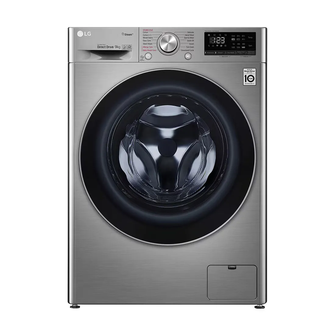 LG Lave-linge de 9 kg à chargement frontal, AI Direct Drive Motor, vapeur, couleur argent