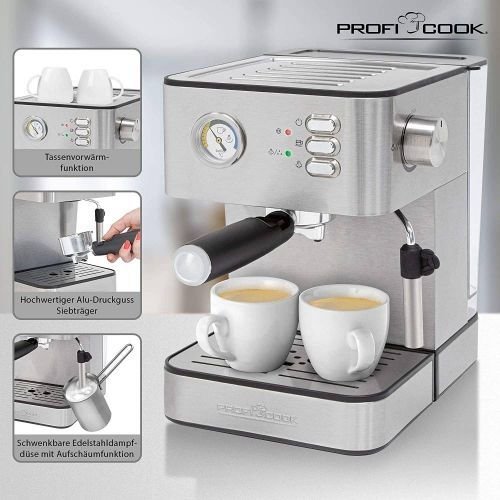 PROFI COOK Machine à Café et Cappuccino INOX 20 BARS Proficook – 2 tasses – Marque Allemande