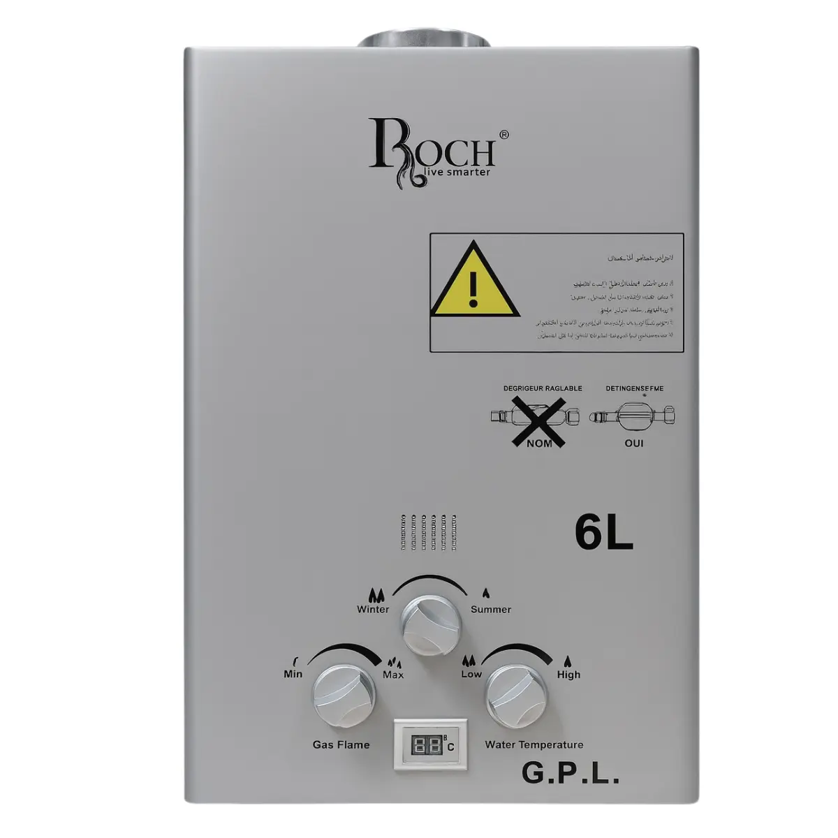 Découvrez le chauffe-eau à gaz Roch 6L, un appareil moderne et pratique conçu pour fournir de l’eau chaude rapidement et en toute sécurité. Sa technologie avancée garantit une chauffe homogène et stable, idéale pour les besoins quotidiens de votre famille. Son design compact et élégant s’intègre parfaitement dans tous les types de cuisines et salles de bain.