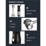 Ce mixeur plongeant est idéal pour toutes vos recettes, qu’il s’agisse de soupes, sauces ou smoothies. Il est équipé d’une fonction Fast Start pour un démarrage immédiat et d’un système Easy Clean pour un nettoyage simplifié. Son design en acier inoxydable et sa boucle de suspension facilitent son rangement.