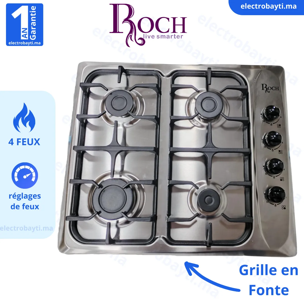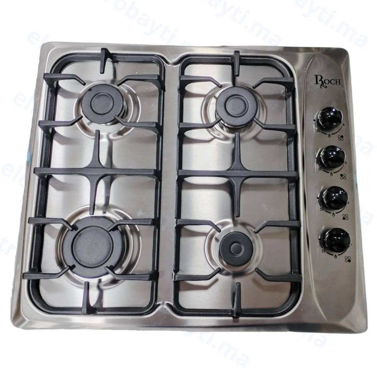 Roch Plaque de cuisson à gaz encastrable inox 4 feux en fonte 60cm