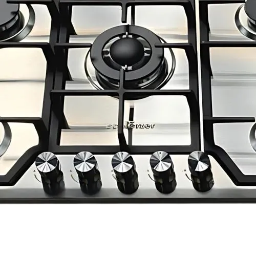 Découvrez la plaque à gaz Schlëizer 5 feux avec fonte et inox, pour une cuisine robuste et élégante !