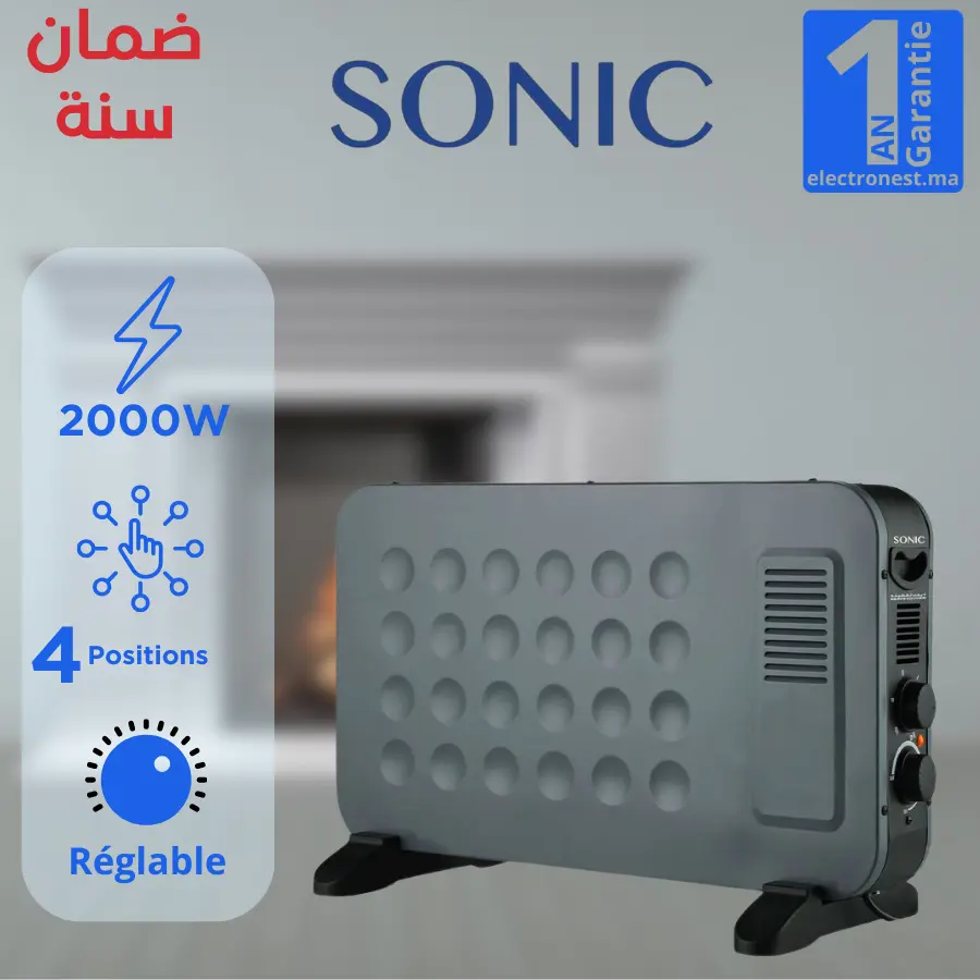Découvrez ce chauffage convecteur SONIC CEC2000SC, un appareil performant de 2000W conçu pour diffuser une chaleur douce et homogène dans votre intérieur. Grâce à sa puissance efficace et à son système de convection associé à une ventilation intégrée, il réchauffe rapidement la pièce tout en assurant un confort thermique constant. Son design moderne et compact lui permet de s’intégrer facilement dans tout espace de vie.