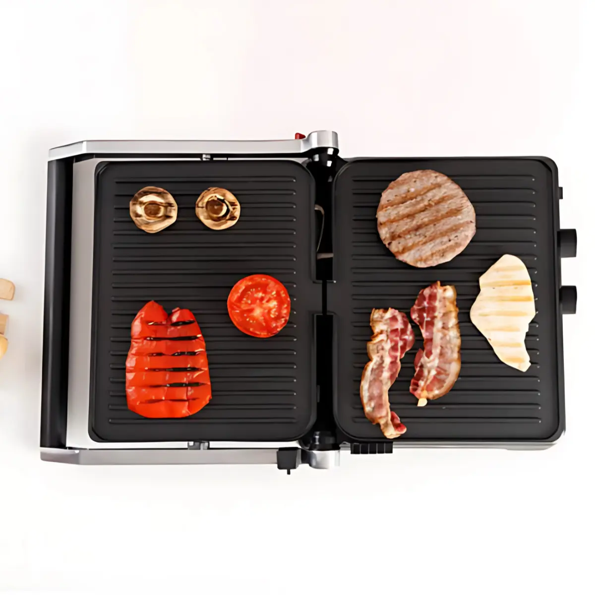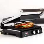 Pour un nettoyage sans effort, profitez de son bac à graisse amovible et de sa conception pratique. La sécurité est également au rendez-vous grâce à ses bras en aluminium renforcés et sa base antidérapante. Cet appareil allie robustesse et praticité pour vous accompagner durablement dans vos préparations culinaires.