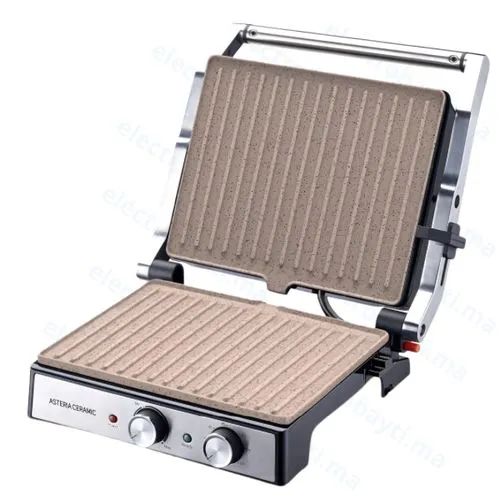 Préparez des paninis, des grillades ou un barbecue de table avec ce grill élégant en acier brossé, doté d’un revêtement en pierre rockstone anti-adhésif. Avec une puissance de 2000 W et une capacité pour 2 à 3 paninis ou 5 portions, il allie praticité et sécurité.