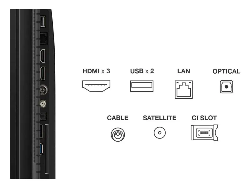 • Connectivité complète – 3 HDMI 2.1 (dont eARC), 2 USB, Wi-Fi 5, Ethernet, Bluetooth 5.4.