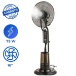 – **Ventilateur Brumisateur :** Combine ventilation et brumisation pour une fraîcheur intense.- **Diamètre :** 40 cm (16 pouces) pour une large couverture d’air.- **Type :** Ventilateur sur socle, facile à déplacer et à positionner selon vos besoins.